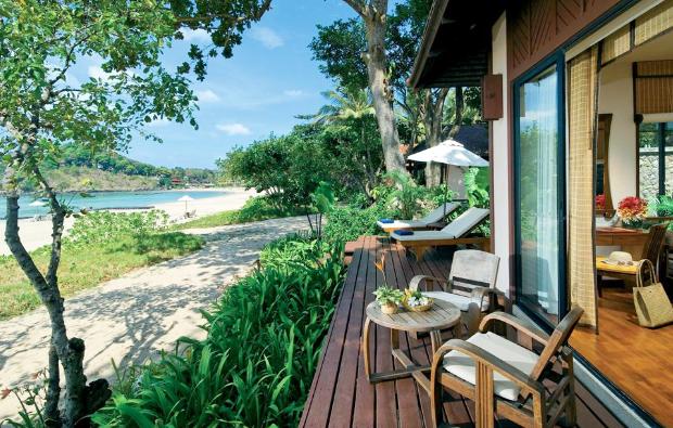 Each pool villa also has a living room building, with a small kitchenette and beautiful views over the bay. The villas have courtyards and king-size bedroms, along with huge bathrooms complete with rain showers. The pool villa wing also has its own two restaurants, ensuring ease of access and delicious food for all.